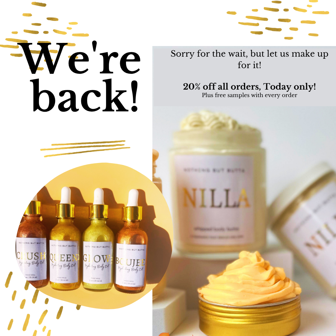 All of our products are made with organic butters and oils. We use unrefined shea butter imported directly from Ghana, and high quality organic oils imported from sources that care. We take pride in our products because we value quality over quantity.